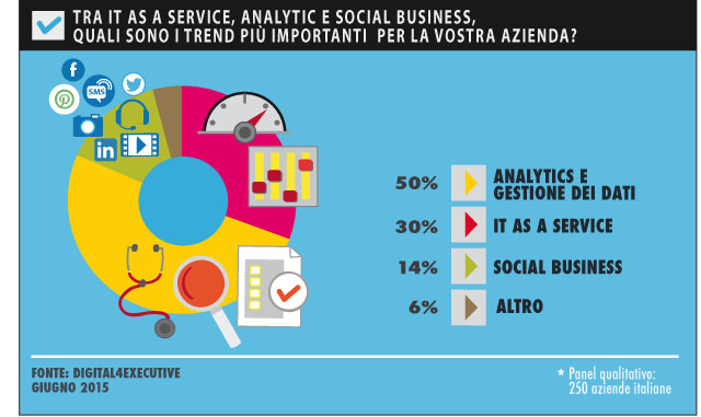 Interessante anche il fatto che un terzo del campione consideri il tema dell’IT as a Service un trend aziendale importante: anche in questo caso significa che sono ben comprese le opportunità associate a un’innovazione a misura di azienda, che si allontana dal vecchio concetto di IT come proprietà, spostandosi a un approccio di IT come servizio e come abilitatore di nuove opportunità di sviluppo.