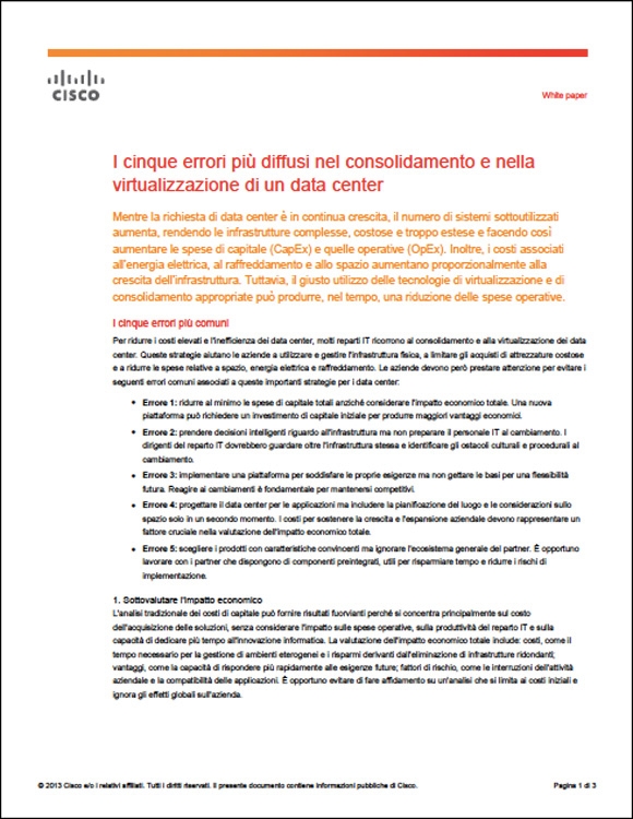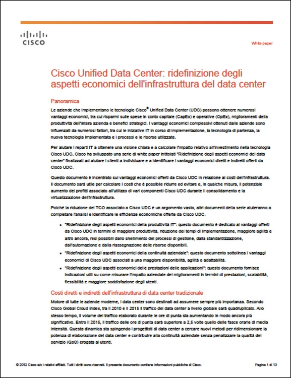 Quanto e come si risparmia utilizzando Cisco Unified Data Center