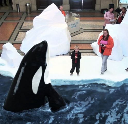 A usarla in ambienti pubblici qualche anno fa il National Geographic’s: stazioni e mall commerciali diventavano teatro di uno show intrigante, con dinosauri che camminavano in mezzo alle persone, orsi polari con i cuccioli che passeggiavano mansueti tra le gambe della gente.