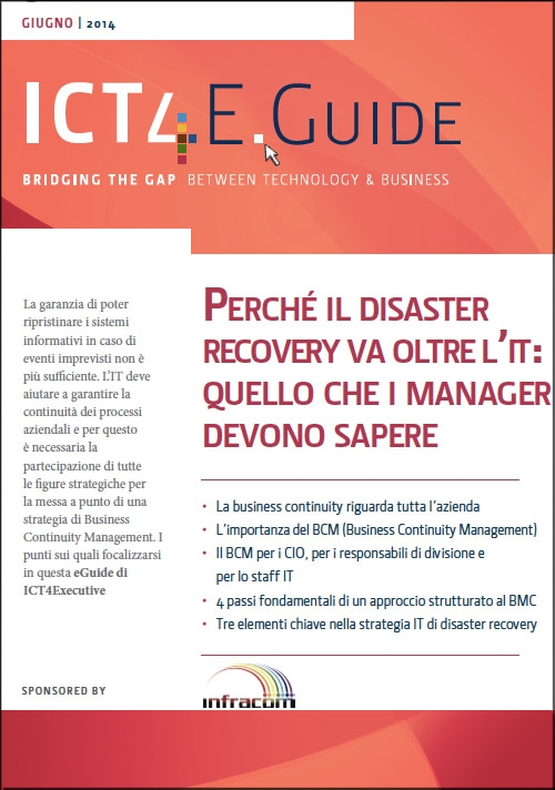 ![]() | PERCHÉ IL DISASTER RECOVERY VA OLTRE L’IT: QUELLO CHE I MANAGER DEVONO SAPERE Fino a qualche tempo fa l’interruzione della continuità operativa aziendale veniva gestita attraverso interventi di ripristino mirati. Oggi l’approccio è profondamente cambiato. In questo white paper, oltre a un elenco di cause che possono impattare sulla business continuity, tutti i suggerimenti necessari a definire un modello di BCM strategico. L’importanza dell’outsourcing. | |