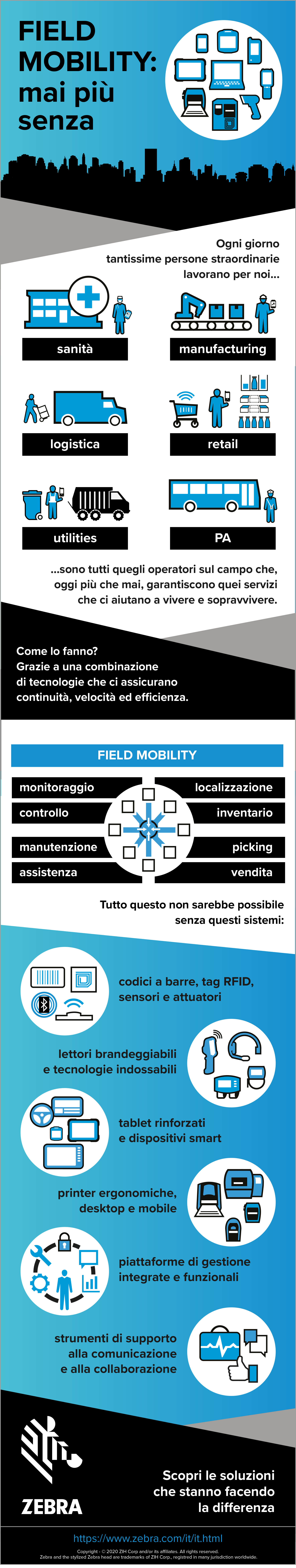 Dal 1969 Zebra Technologies fornisce sistemi di Field Mobility allo stato dell’arte. Pioniere dell’innovazione dedicata alla produttività dell’ultimo miglio, con oltre 4400 brevetti e più di 10mila partner commerciali, l’azienda fornisce prodotti, software, servizi e strumenti di analisi all’avanguardia per connettere in modo intelligente persone, risorse e dati. Grazie a decenni di esperienza nel settore, i prodotti vengono progettati considerando gli utenti e gli ambienti di lavoro, con servizi di consulenza e di supporto che garantiscono alle organizzazioni l’ottimizzazione di sistemi e procedure in ogni settore.
