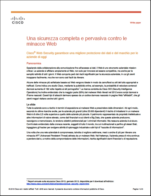In questo documento Cisco spiega i livelli di sofisticazione delle minacce on line e le best practice che aiutano a definire le linee di una governance della sicurezza, basandosi su questi passi: