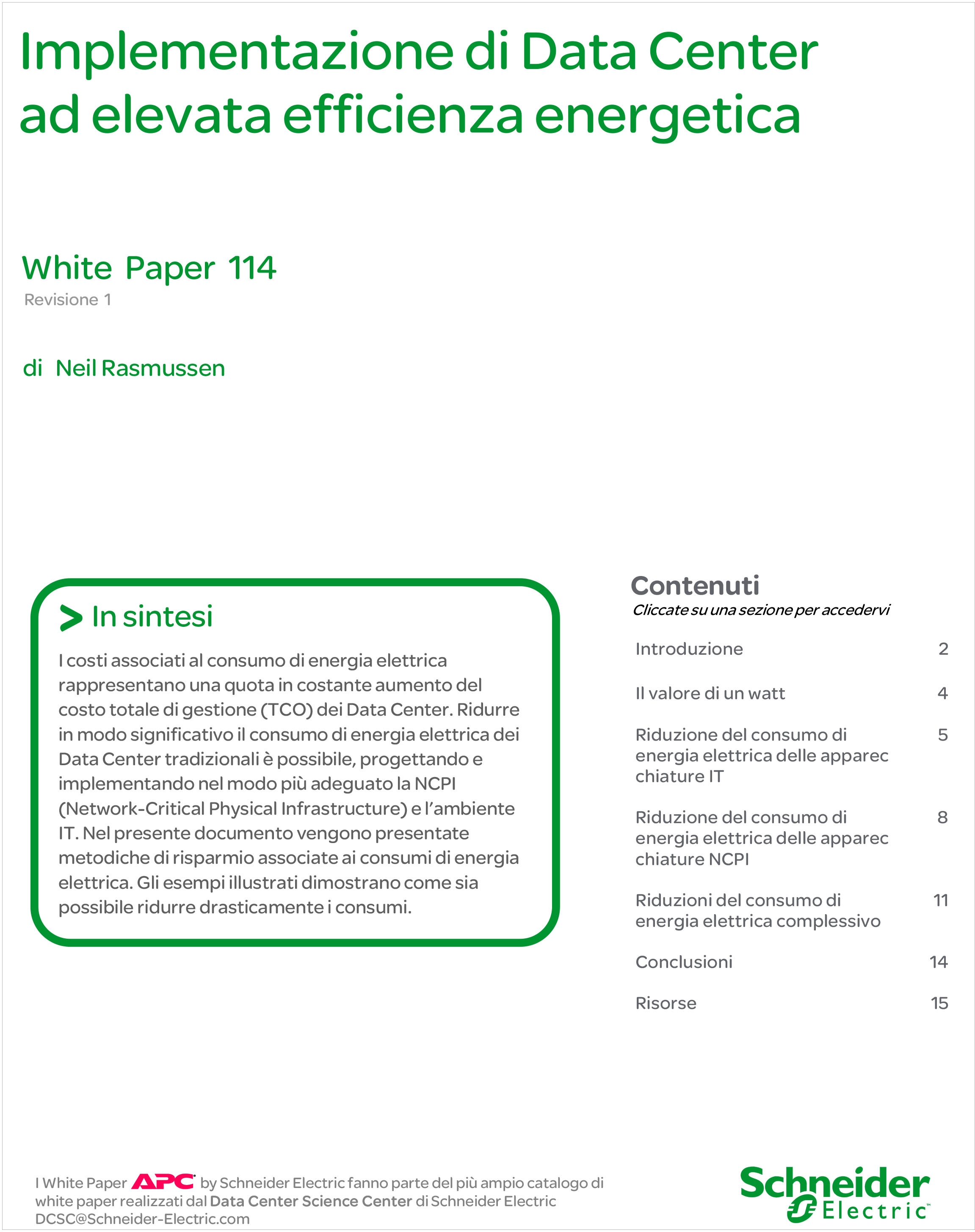 Questo white paper, fornito da Scheider, presenta metodiche di risparmio associate ai consumi di energia elettrica e dimostra attraverso diversi esempi come sia possibile ridurre drasticamente i consumi nei data center. Leggendolo, potrete capire: