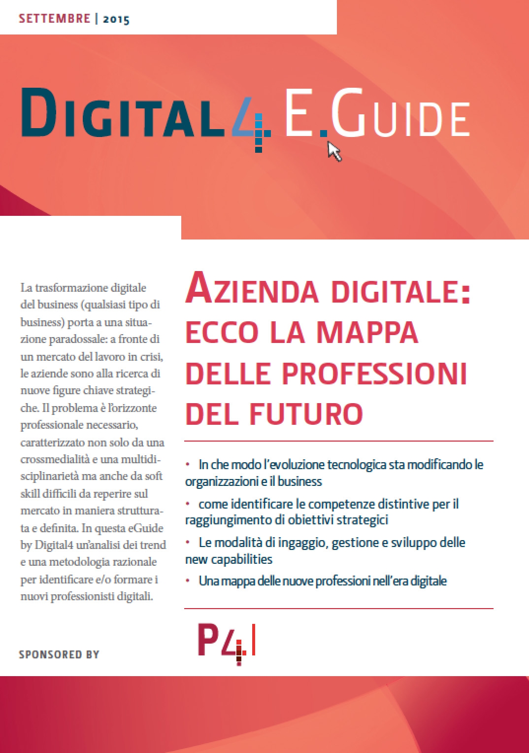 In questa eGuide by Digital4, realizzata in collaborazione con P4I, i trend della digitalizzazione e dei lavori del futuro, ma anche un’utile metodologia che aiuta le imprese, di qualsiasi dimensione e settore, a identificare in fretta una o più risorse necessarie a supportare l’onda lunga della digital transformation. Leggendola, sarà possibile capire come: