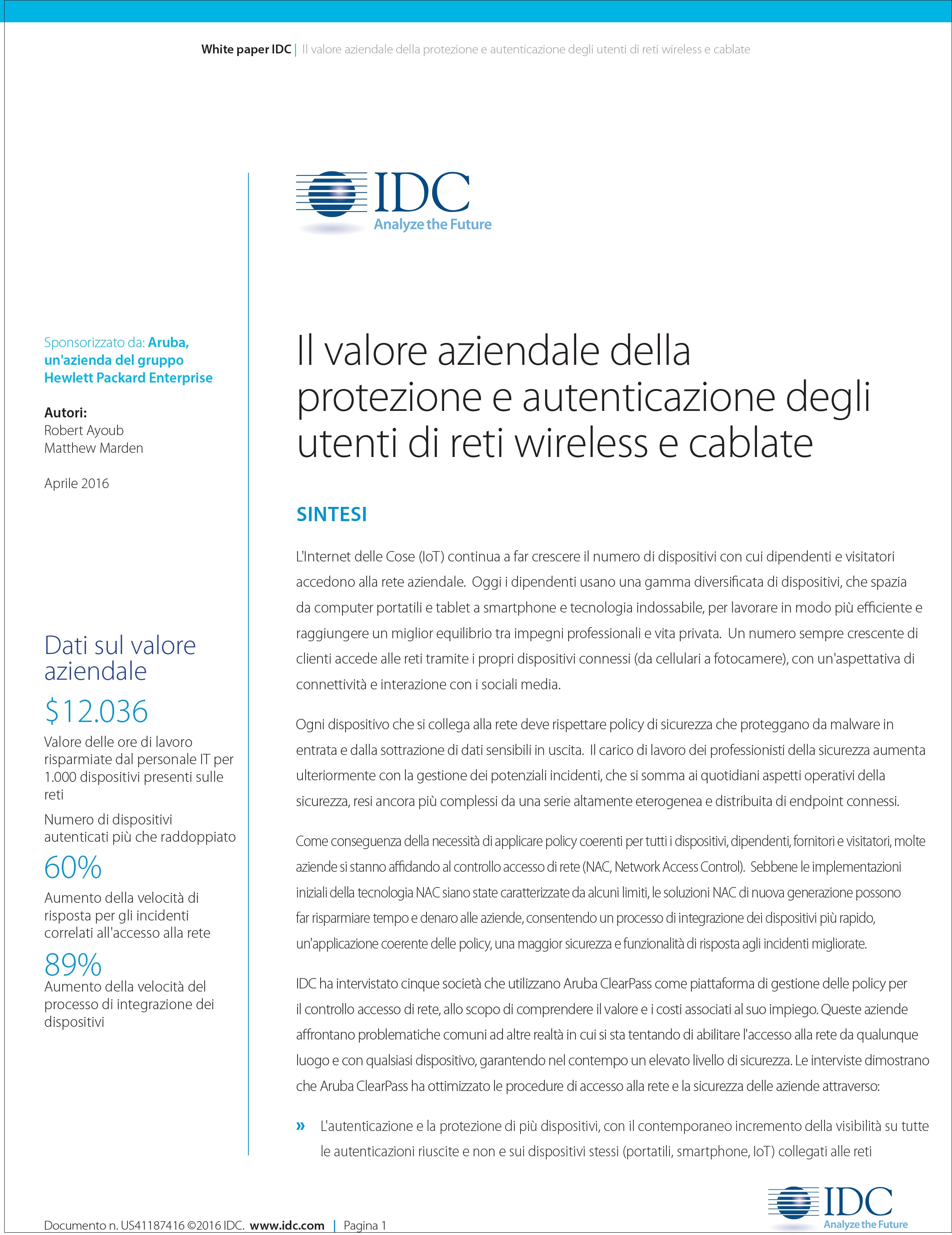 Questo white paper, fornito da Hewlett Packard Enterprise, illustra i risultati di una ricerca comparata tra cinque società che utilizzano una piattaforma di gestione delle policy per il controllo degli accessi di rete. Leggendolo, potrete scoprirete come: