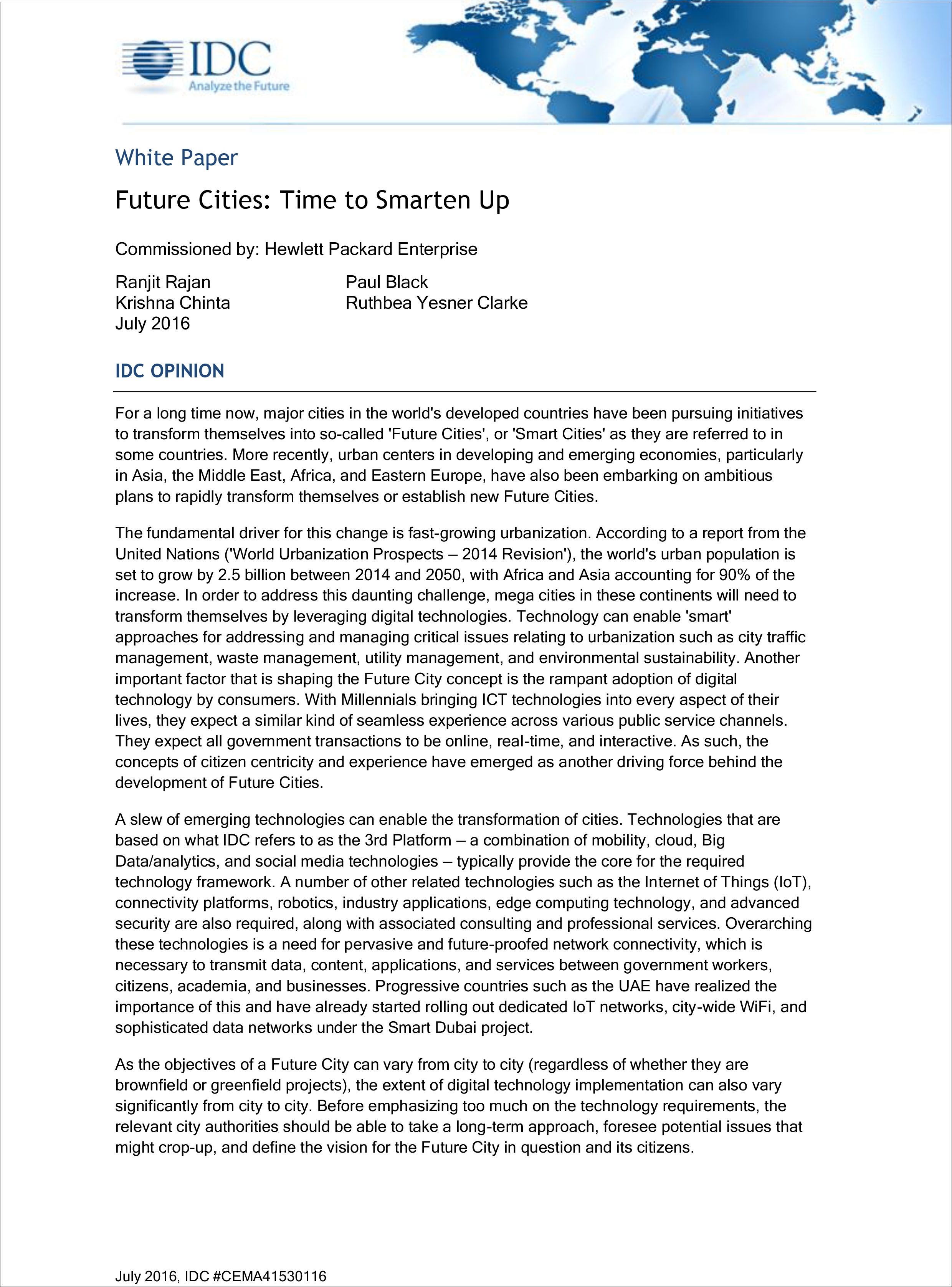 Questo white paper, fornito da Hewlett Packard Enterprise, illustra i fattori chiave che guidano gli sviluppi delle Future City in Europa, Medio Oriente e Africa (EMEA) e offre una vera e propria guida per la trasformazione delle nostre città in smart city.